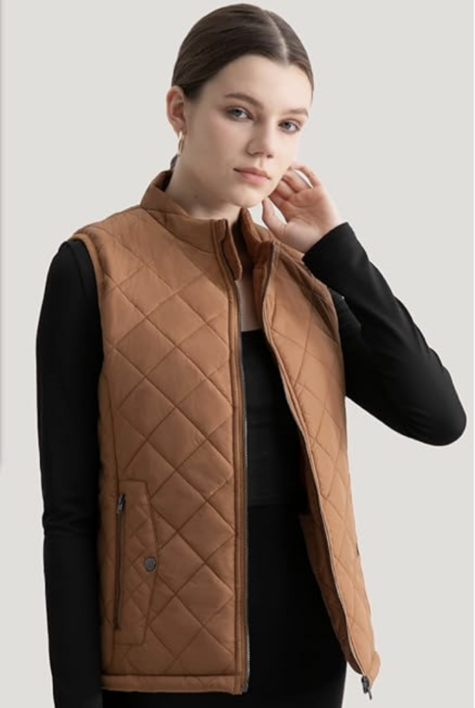 - Why it’s a Must-Have: A quilted vest is a hallmark of the ‘Old Money’ style. Opt for a rich navy or a warm tan. It offers an extra layer of warmth for your core while allowing full range of motion for your arms – perfect for graceful glides. The subtle diamond quilting adds texture and a touch of heritage appeal.