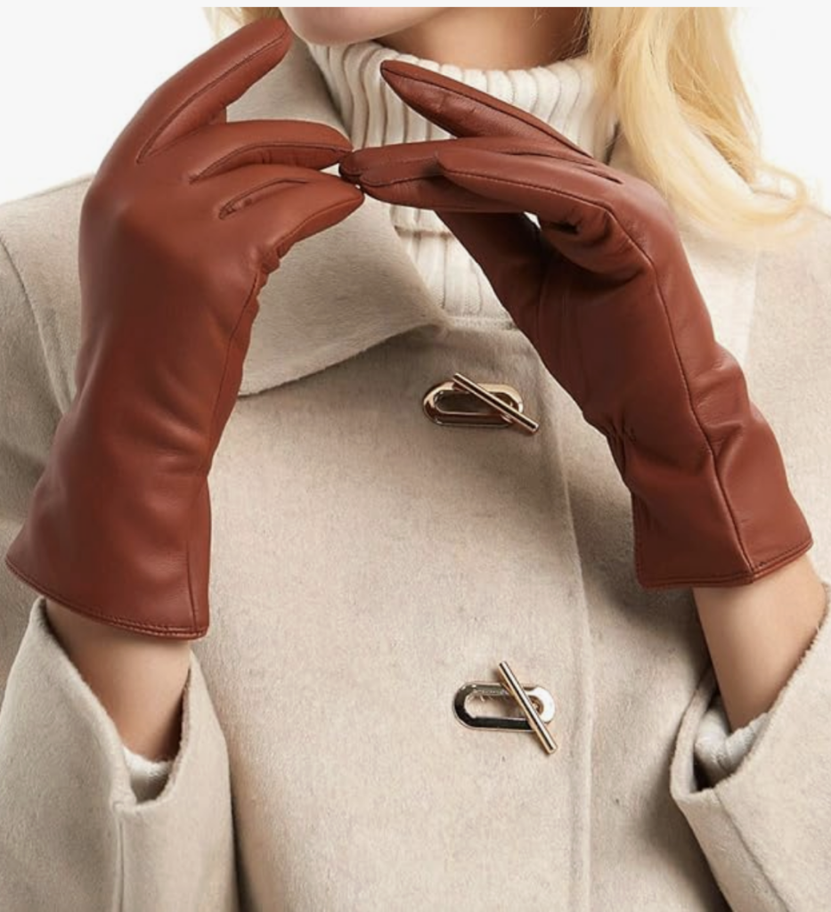 - Why it’s a Must-Have: Complete your elegant look with a pair of leather gloves featuring a subtle fur trim. These gloves offer superior warmth and a luxurious feel, ensuring your hands stay cozy while adding an undeniable touch of class. They are practical for grip and warmth, yet stylish enough to complement your sophisticated ensemble.